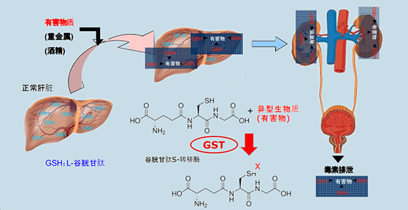 谷胱甘肽含有的半胱氨酸能夠和進(jìn)入人體內(nèi)的藥物和毒素(芥子氣,鉛、汞、砷等重金屬)等結(jié)合成無毒的化合物,從而具有解毒功能。