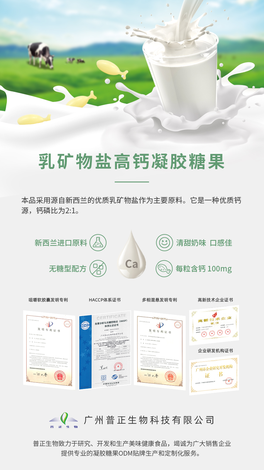 其主要成分是磷酸鈣,除此之外還包括蛋白質(zhì)、乳糖及鋅、磷、鈉、鉀、鎂、等豐富的營(yíng)養(yǎng)成分,含鈣量約為23%~28%,其鈣磷比為2∶1,較利于人體的吸收利用,作為一種新的鈣源被廣泛用于各種食品。